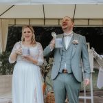 Wir hatten also Glück und konnten die freie Trauung gleich auf dem Innenhof der Location, unter freiem Himmel, durchführen. Und die Trauzeremonie hatte einiges zu bieten!